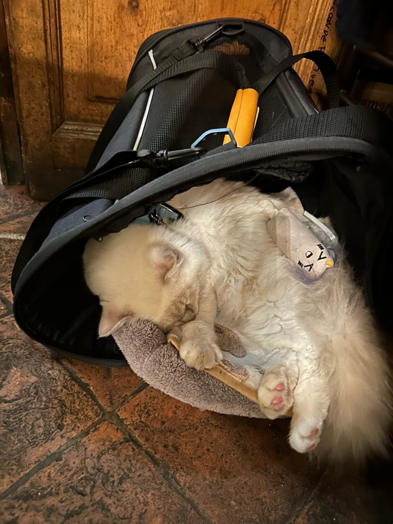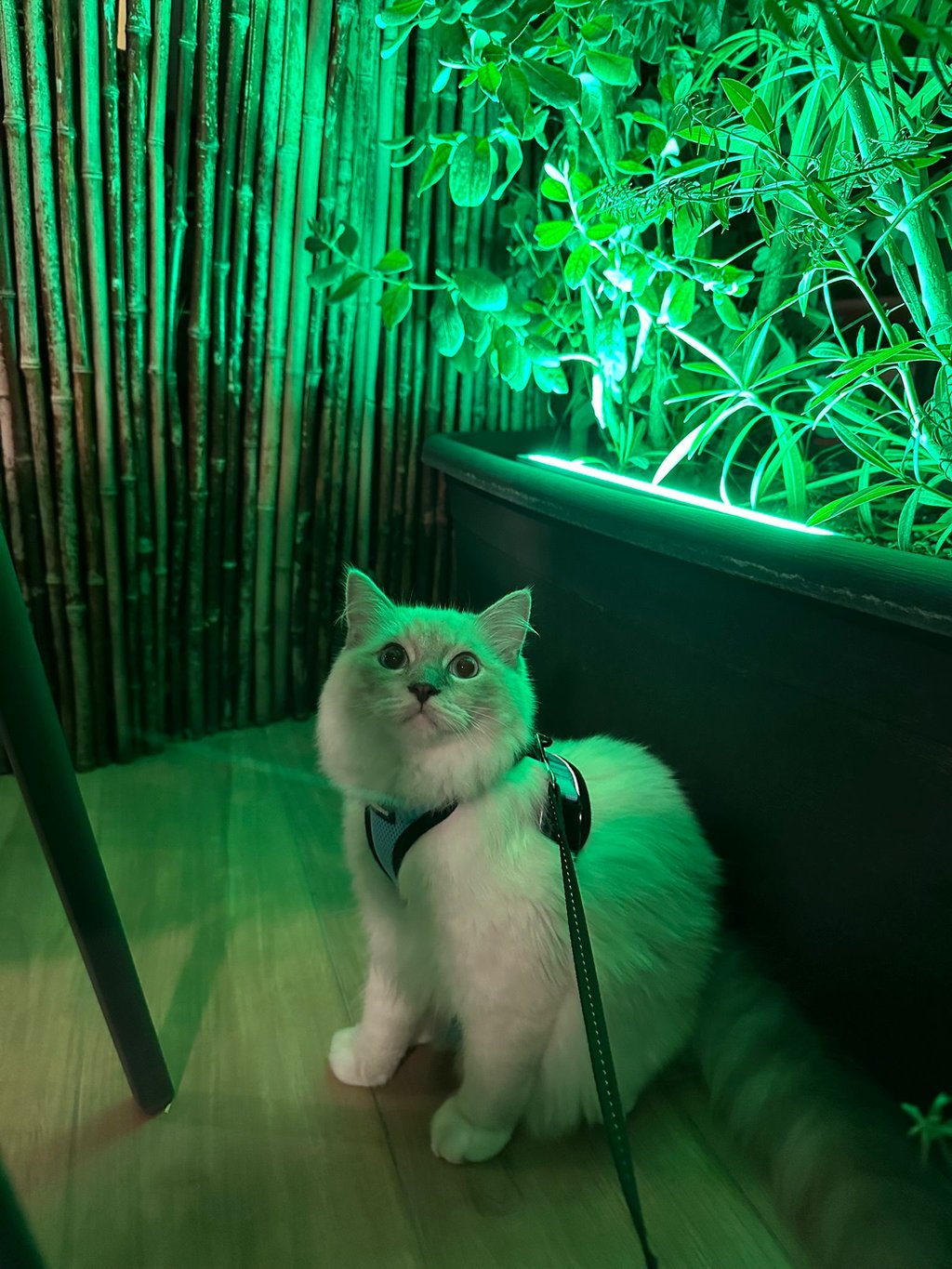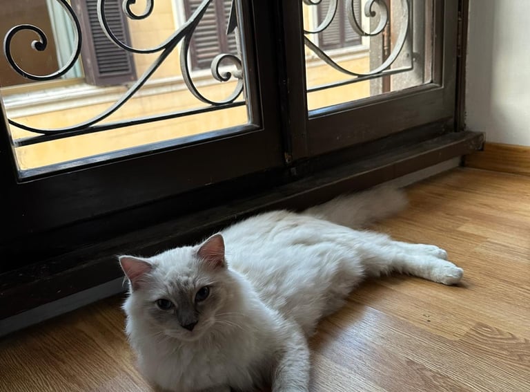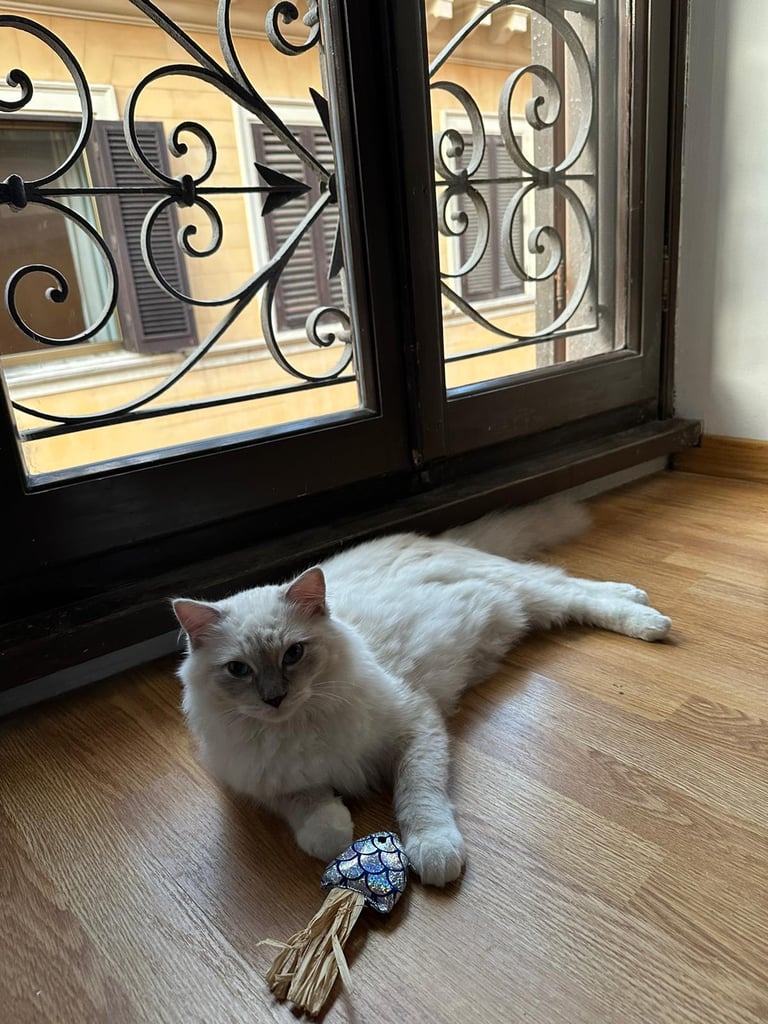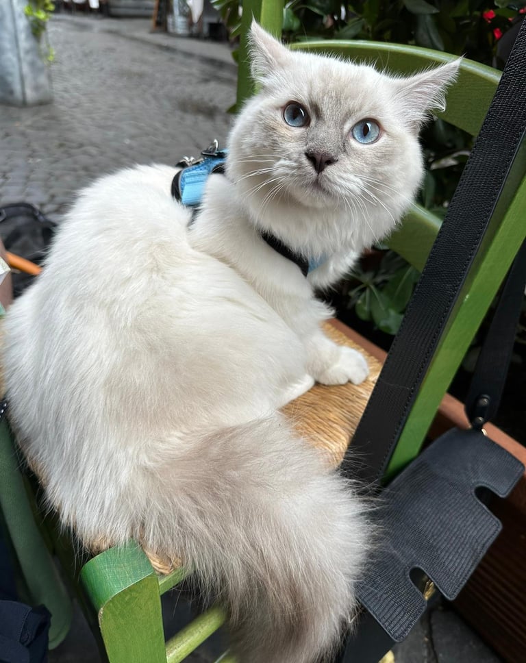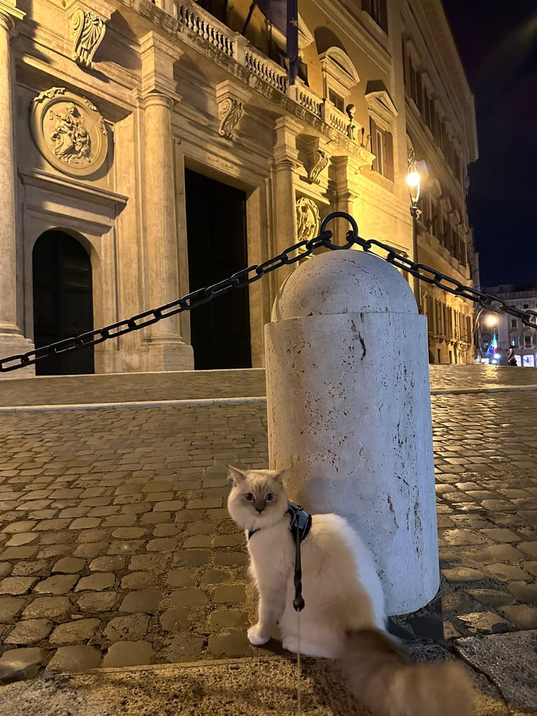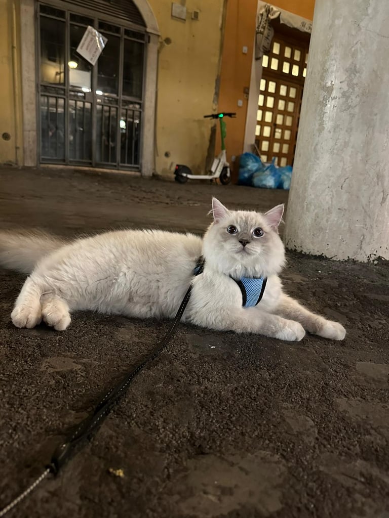 Je suis resté bien sage, profitant du soleil italien et des regards émerveillés des passants. Ils semblaient tous surpris de voir un chat aussi élégant et tranquille dans un bar en extérieur. Mais bon, c’est normal, je suis un Ragdoll après tout, on a la classe, non ? 😼