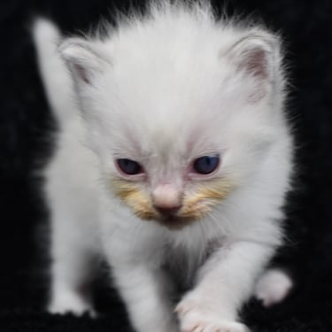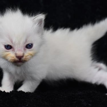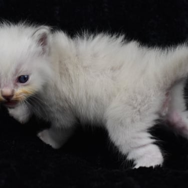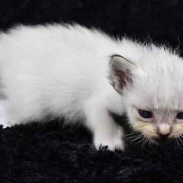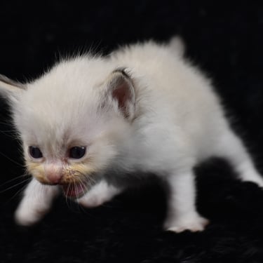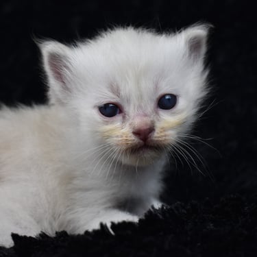 "Le seul petit mâle de la portée, avec le bout des pattes blanches"