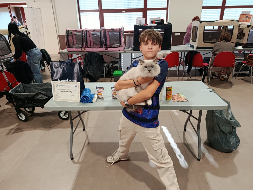 Le premier jour n’a pas été de tout repos : un peu de mal à trouver la salle, et aucune récompense pour nos chats malgré leur belle présentation. Heureusement, nous avons eu le plaisir de croiser des personnes adorables, certaines déjà inscrites sur notre liste d’attente, ce qui a rendu la journée bien plus agréable.