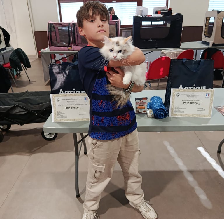 Ce week-end, nous avons participé à l'exposition féline de Nancy organisée par l'Anabi. Nous avions avec nous 4 de nos chats : Zoélie des Dolls de Mitilo, Rebirth du Manoir des Dolls, Aérith des Anges Anadoll et Wolfgang Amadeus du Manoir des Dolls.